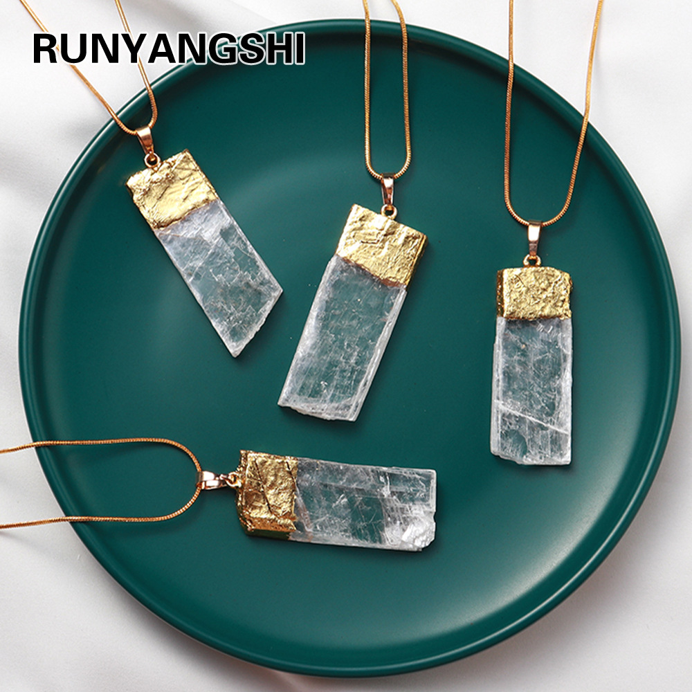 Natural Crystal Gypsum Square Pendant diy Raw Stone Crystal Energy Meditation Jewelry Necklace Accessories Wholesale