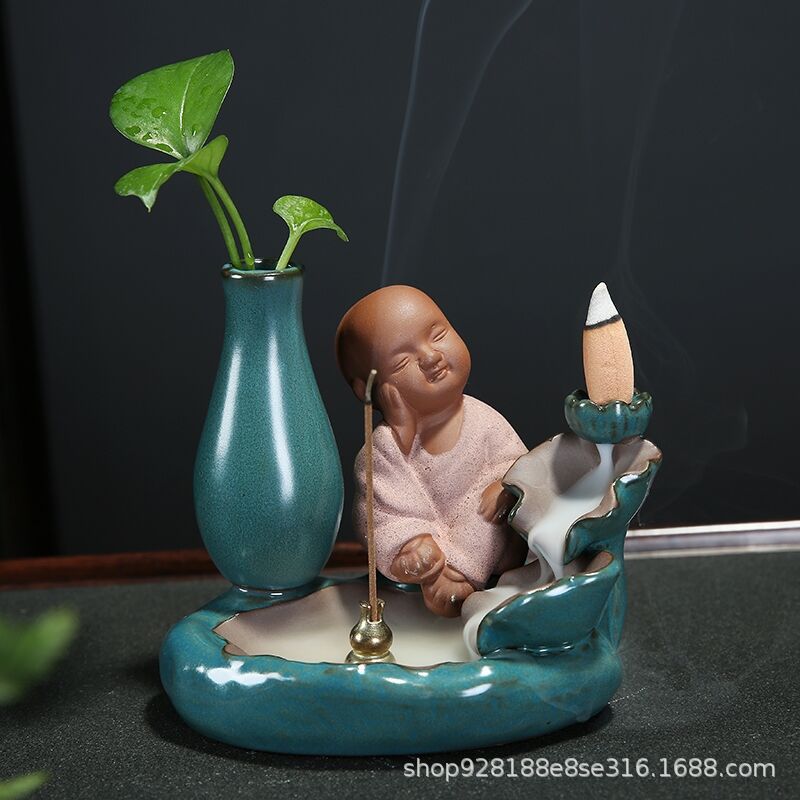 New Chinese Style Purple Sand Small Monk Decoration Zen Buddha Style Small Monk Tea Room Bogu Frame Tea Space Desktop Decoration