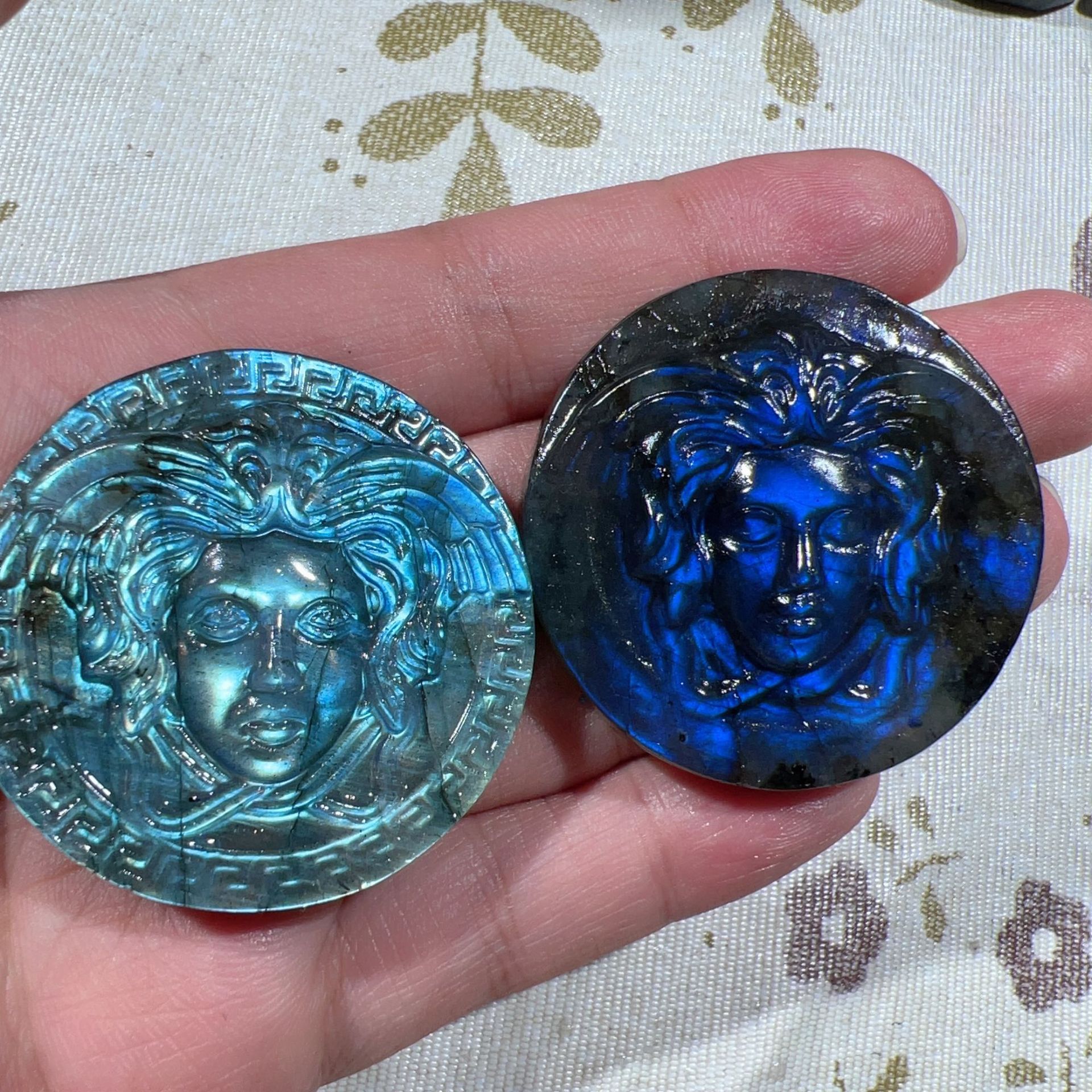 Natural Lavolite Original Stone Crystal Carving Medusa Europe, America and Southeast Asia Decorative Meditation Pendant Ornaments
