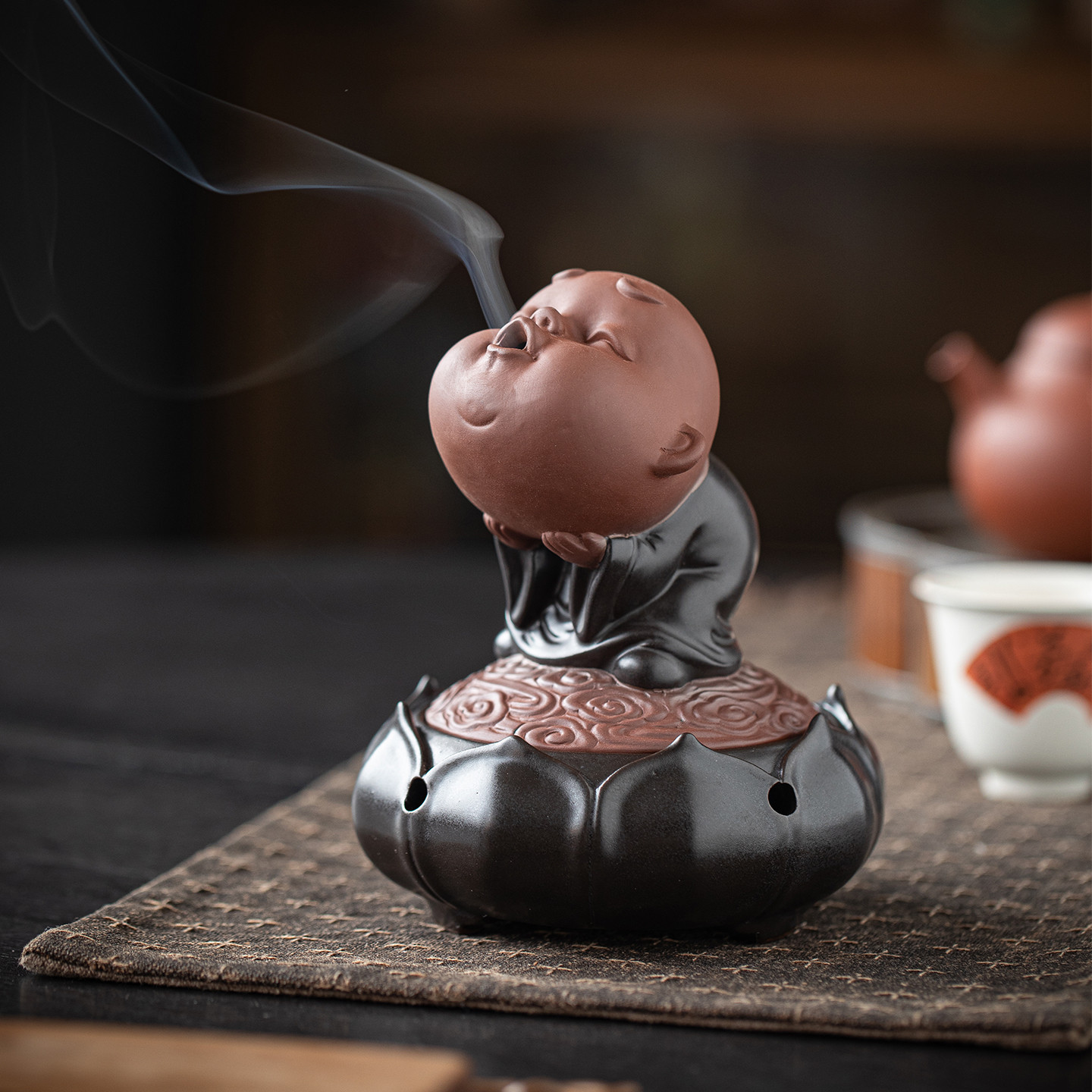 Creative Little Monk Incense Burner Ceramic Cute Little Novice Lotus Plate Incense Burner Zen Tea Room Desktop Aromatherapy Burner Ornaments