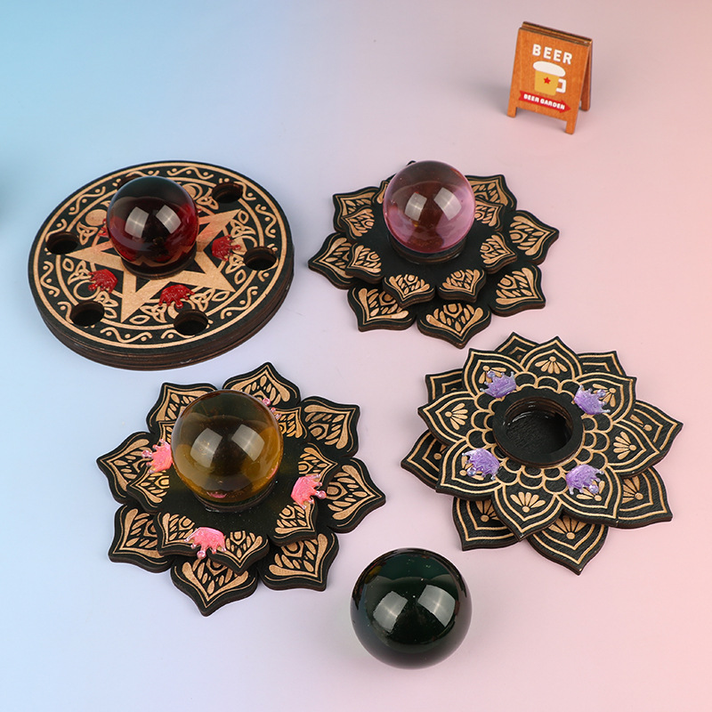 Cross-Border Multi-Layer Crystal Ball Display Stand Wooden Crafts Chassis Bracket Ornaments Meditation Energy Creative Wood Products