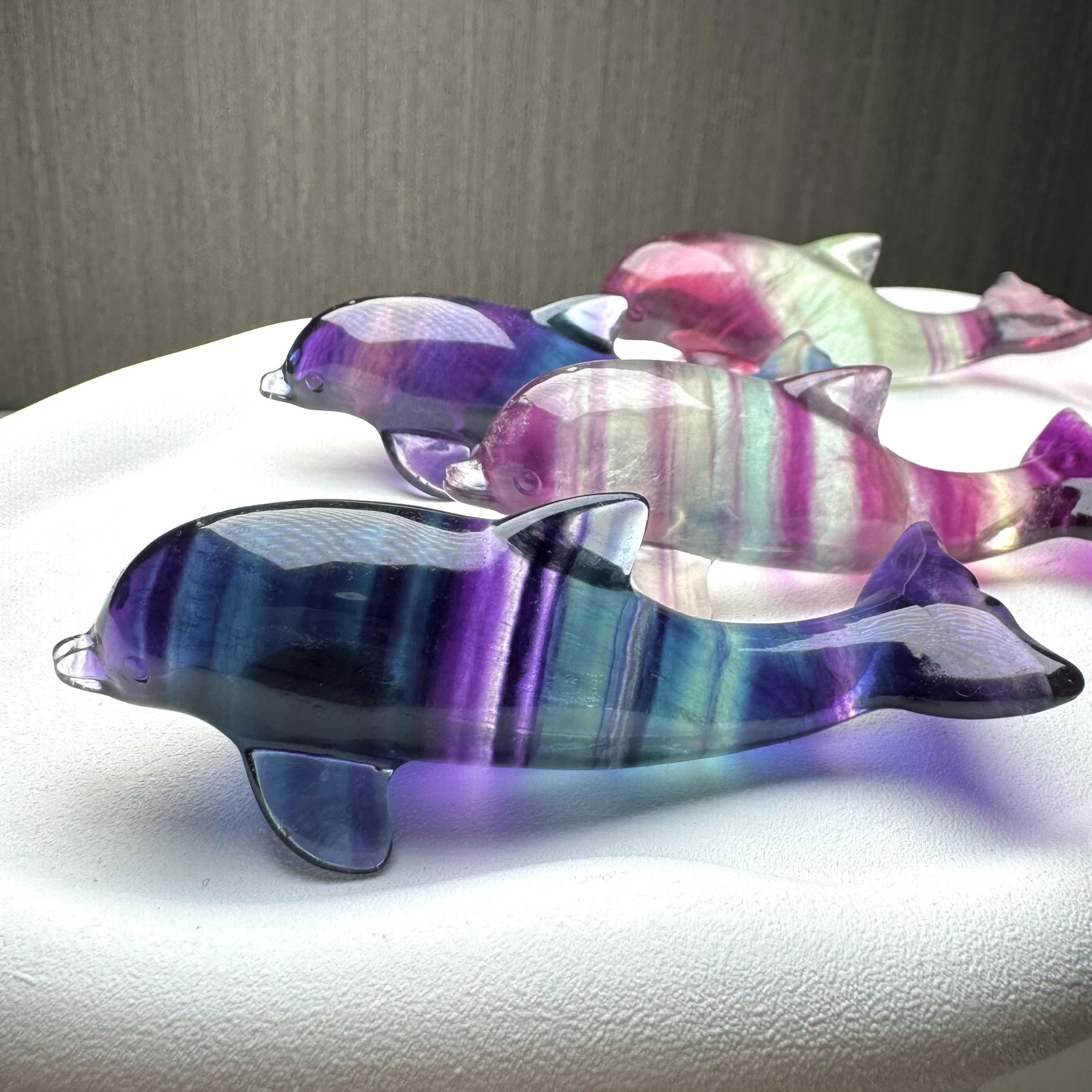 Natural Colorful Fluorite Dolphin Home Decoration Ornaments Meditation Energy Crystal Cross-border Foreign Trade Supply