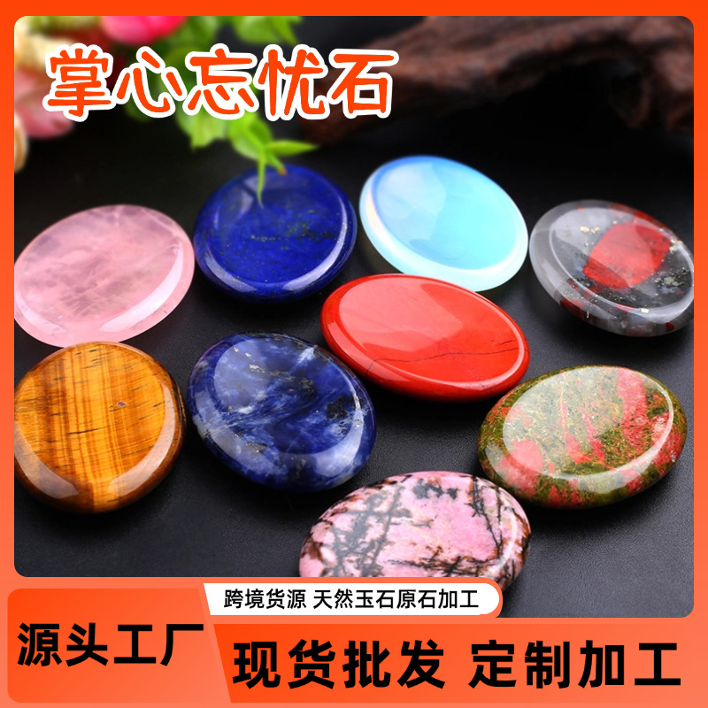 Natural Crystal Oval Decompression Jade White Crystal Forget-Me-Not Stone Palm Stone Hand-Held Meditation Stone Crafts Ornaments