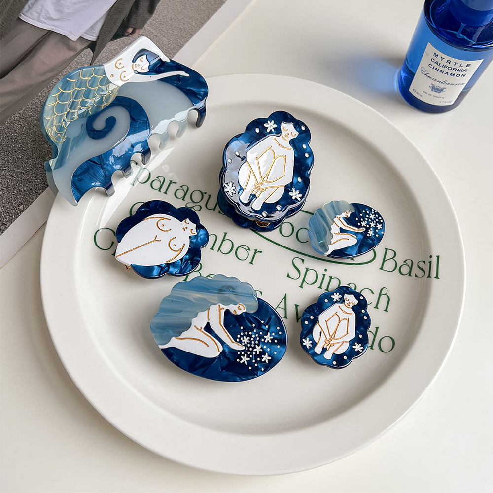 Mermaid Series blue acetate hairpin advanced niche hair accessories updo hair clip sweet girl hairpin side clip