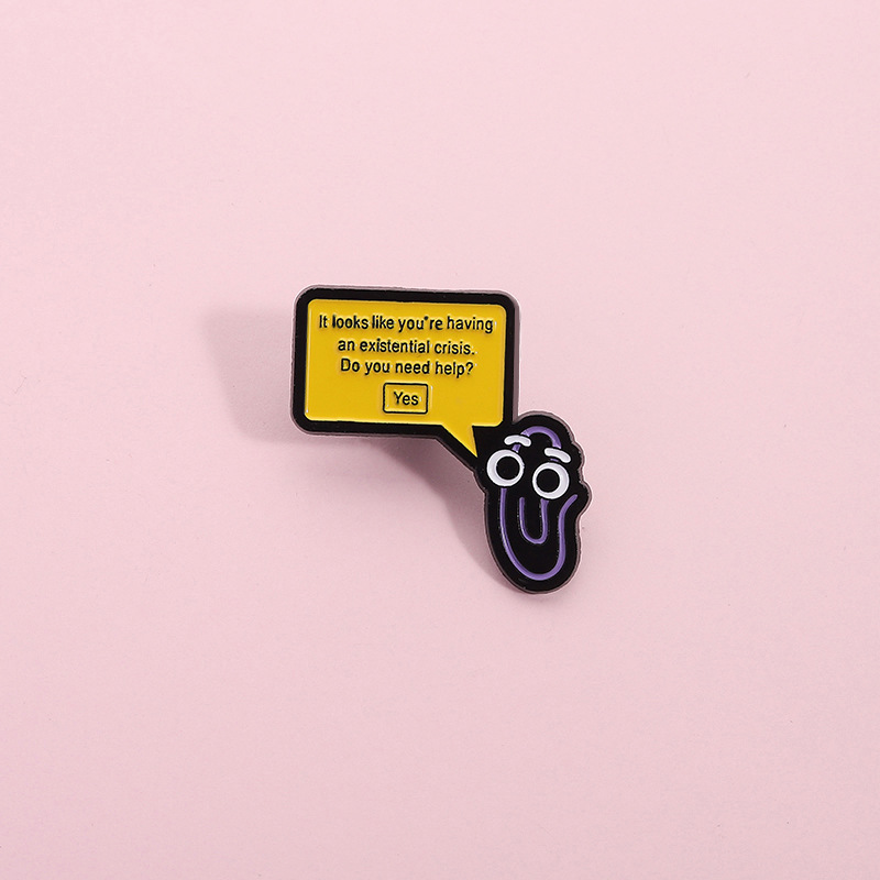 Cartoon Fun Little Earthworm Meditation Dialog Box Shaped Metal Badge Personalized Versatile English Letter Warning Brooch