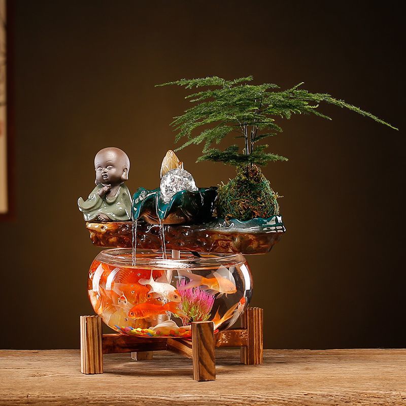 Automatic Circulation Glass Fish Tank Small Home Living Room Tv Cabinet Decoration Office Ornaments Opening Gift