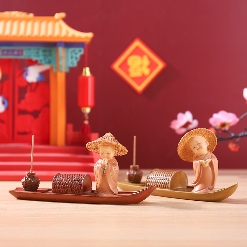 Creative Autumn Leaves Little Monk Incense Ornaments Meditation Tea Ceremony Zen Desktop Decoration Housewarming Gift Direct Sales