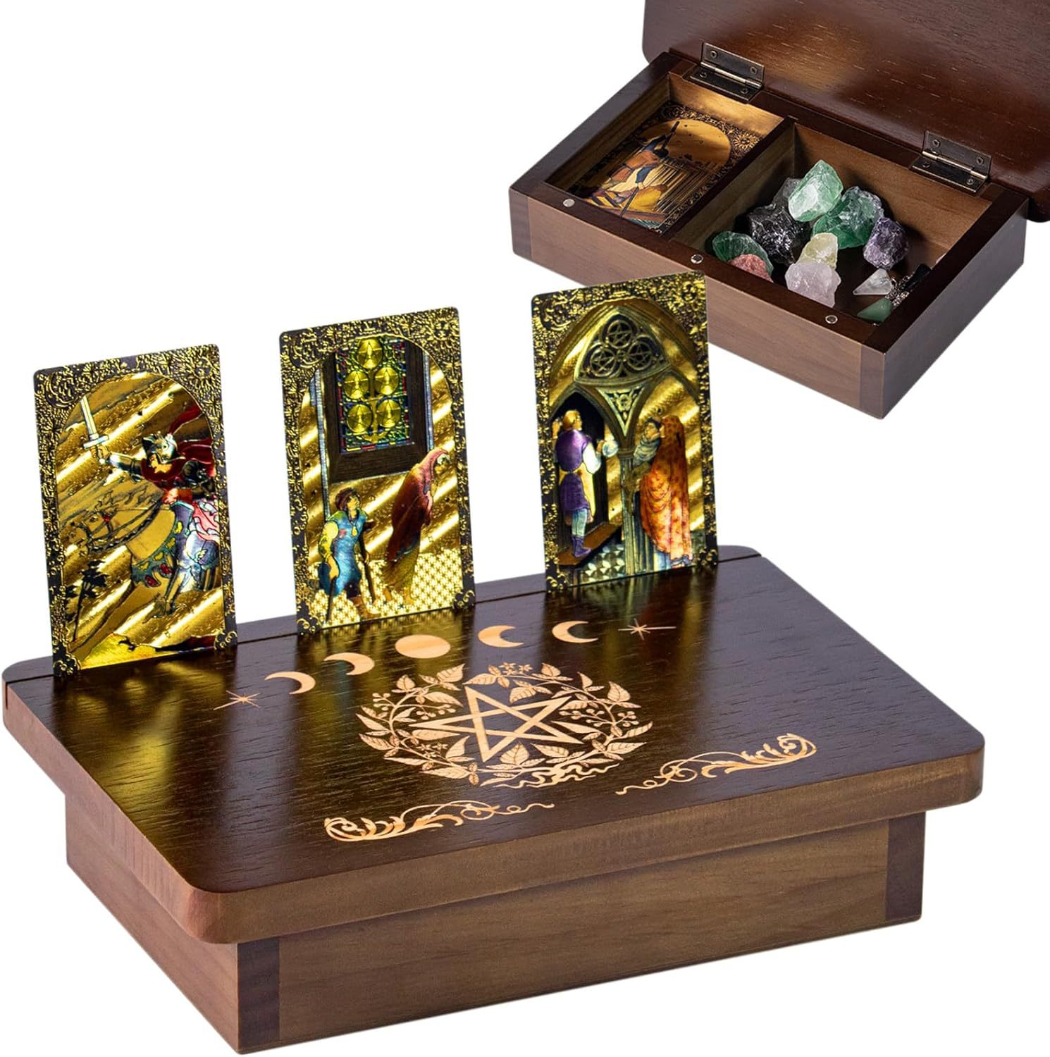 Cross-Border Wooden Altar Table Storage Tarot Card Box Storage Rack Meditation Table Desktop Ornaments Decorative Storage Box