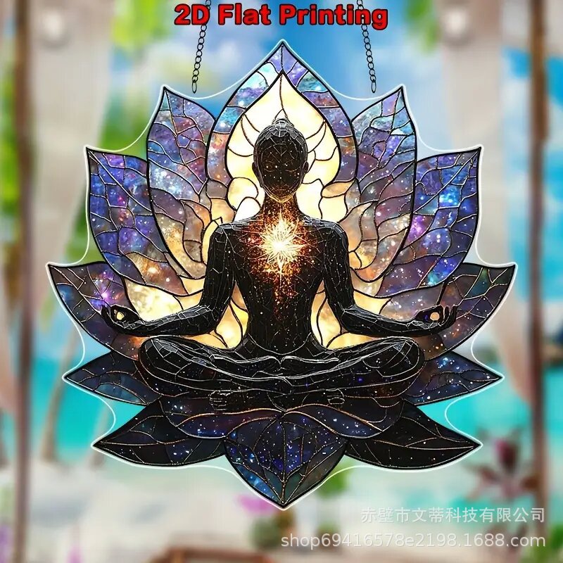 Cross-Border 2D Plane Acrylic Meditation Lotus Sunglasses - Vivid Stained Glass Design Pendant