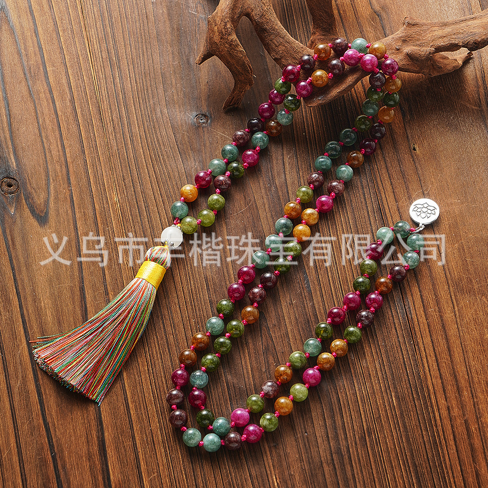 Cross-border Best Selling 108 Colorful Tourmaline Knot Necklace Bohemian Ethnic Style Necklace Hanging Neck Meditation Necklace Manufacturers