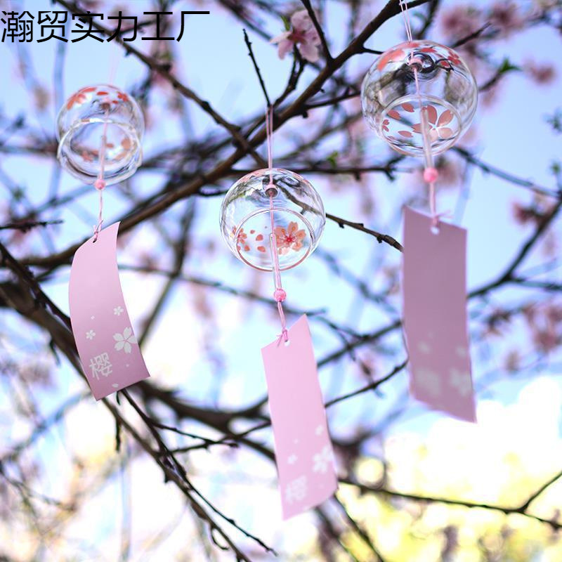 Glass Cherry Blossom Wind Chime Bell Creative Bedroom Pendant Meditation Summer Japanese Style Hanging Ornament Door Decoration for Girls Japanese Style