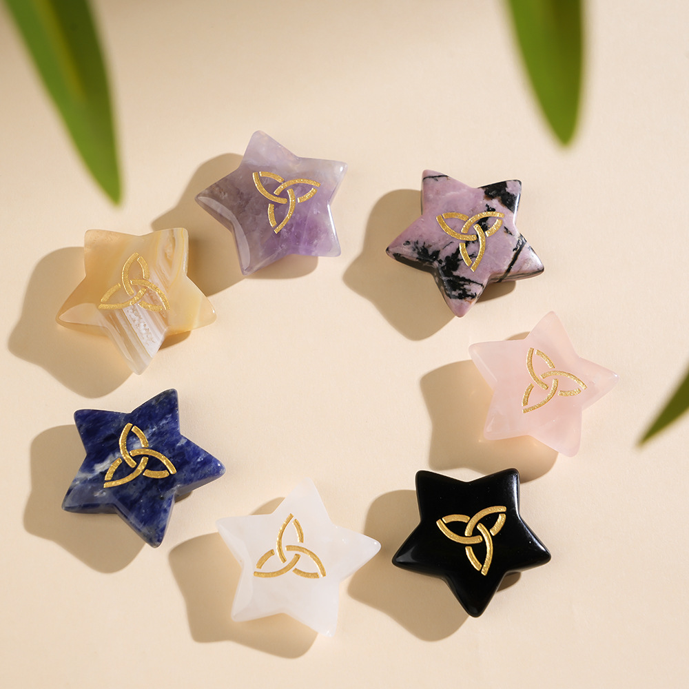 Natural Crystal Agate Five-Pointed Star Carved Irish Celtic Knot Meditation Crystal Yoga Decorative Accessories Ornaments