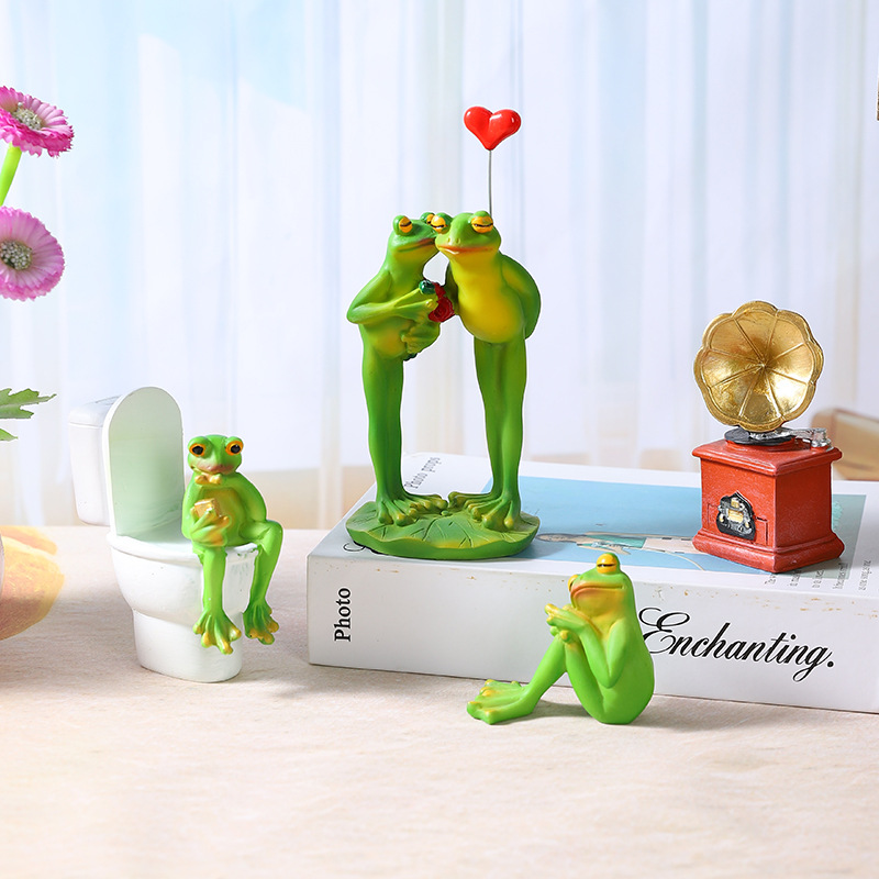 Cross-border New Funny Micro-expression Frog Ornaments Home Window Resin Crafts Decoration Funny Creative Gift