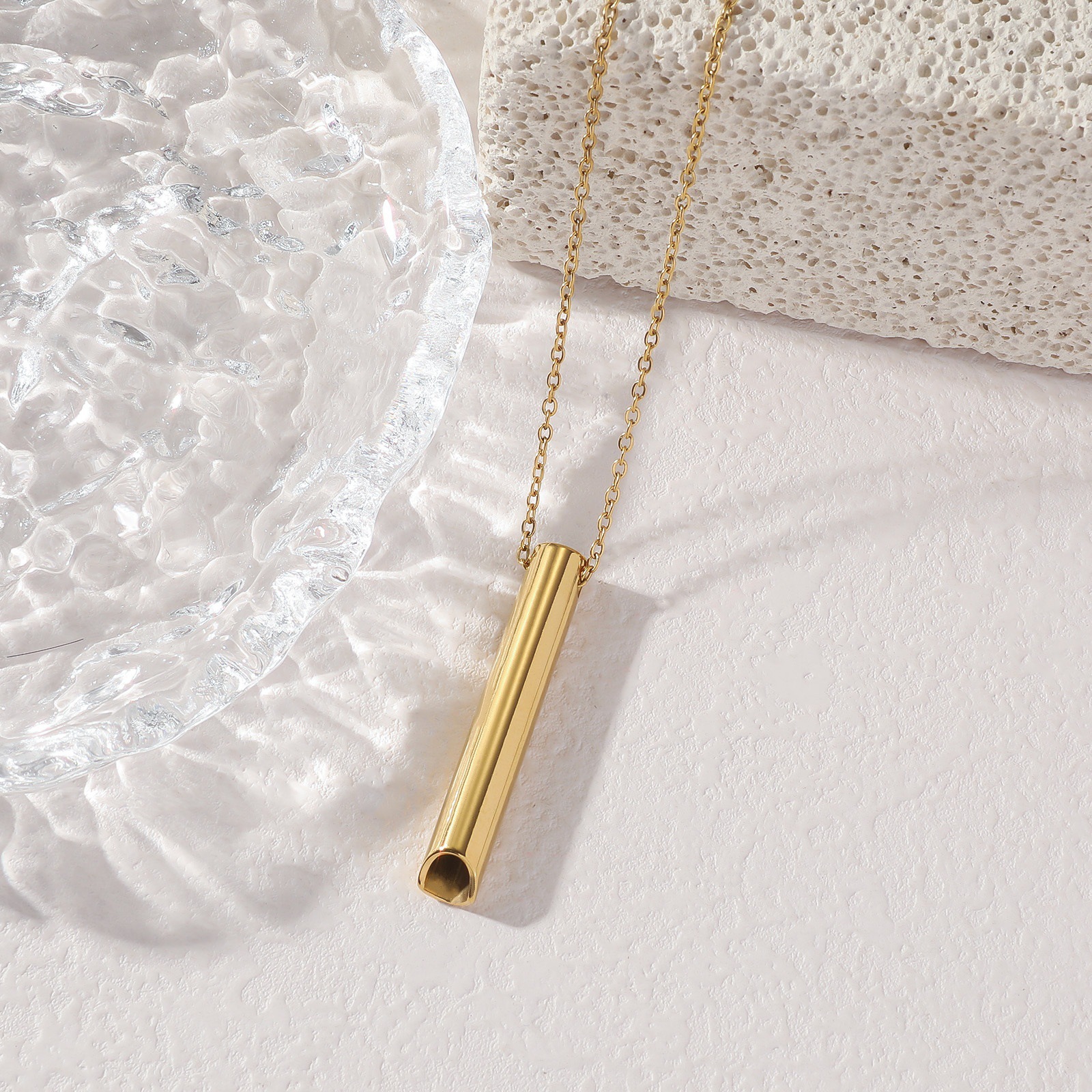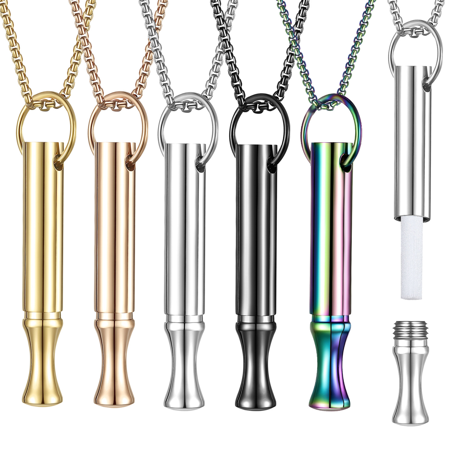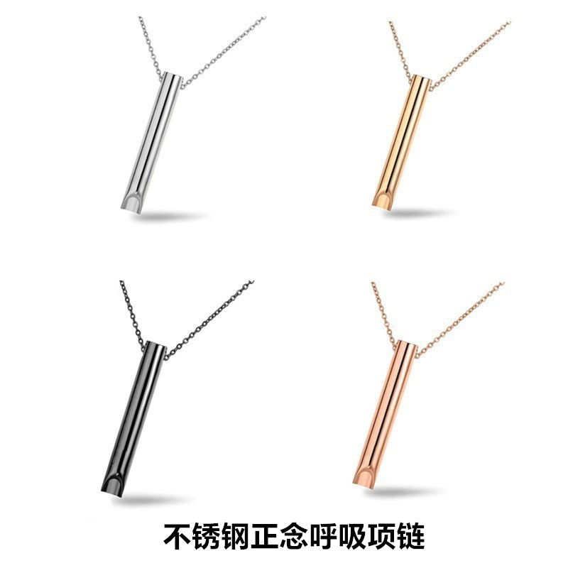 Stainless Steel Yoga Meditation Whistle Necklace Meditation Titanium Steel Mindfulness Adjusting Breathing Decompression Cylinder Jewelry Necklace