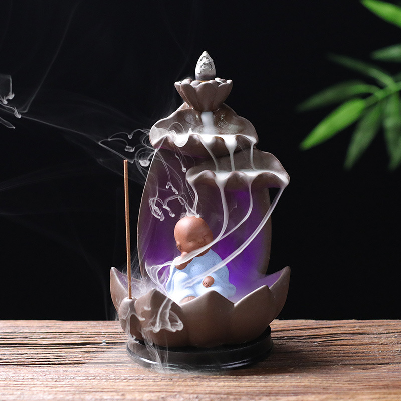 Backflow incense burner creative home incense way small monk colorful light backflow incense burner ornaments manufacturers direct wholesale