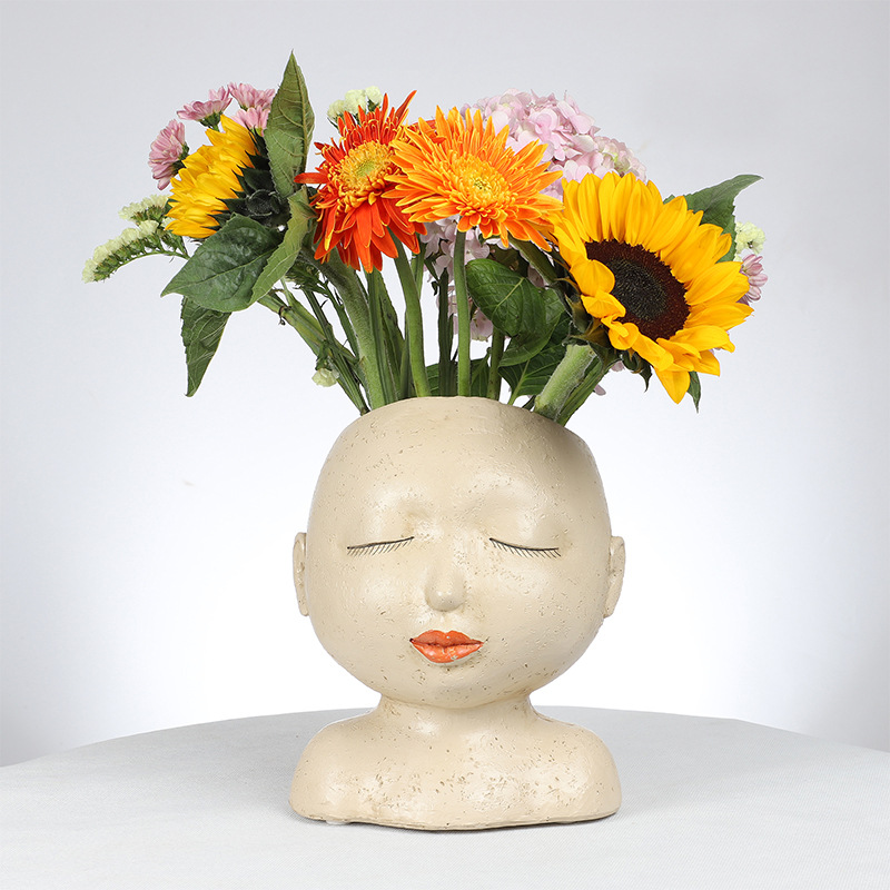 Nordic INS style resin vase meditation girl head portrait sculpture flower arrangement home decoration crafts ornaments