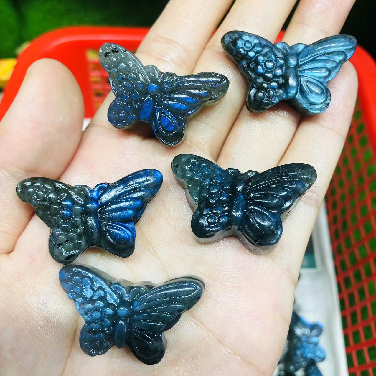 Natural labradorite carved butterfly 3.5cm small size decoration pendant blue green yellow light meditation European and American cross-border hot sale