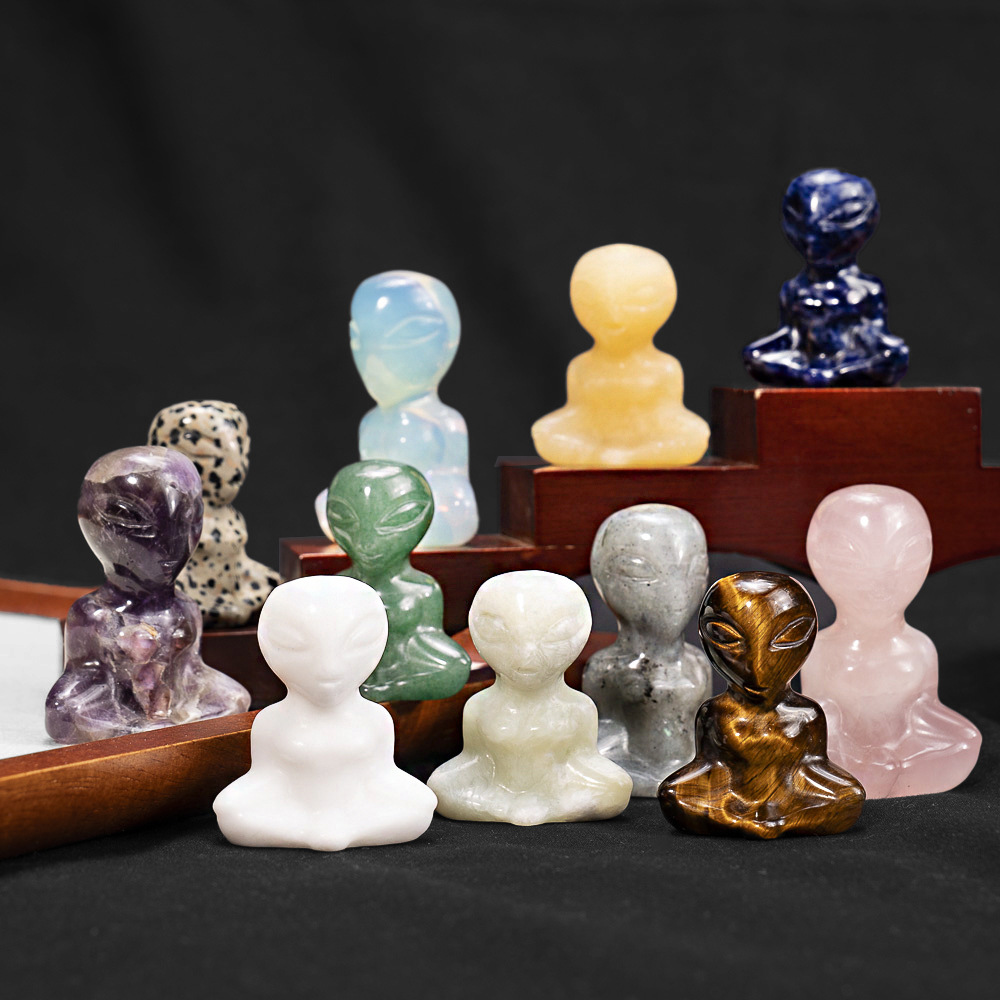 Cross-border Wholesale Natural Crystal Meditation Alien Carving Natural Stone Ornaments
