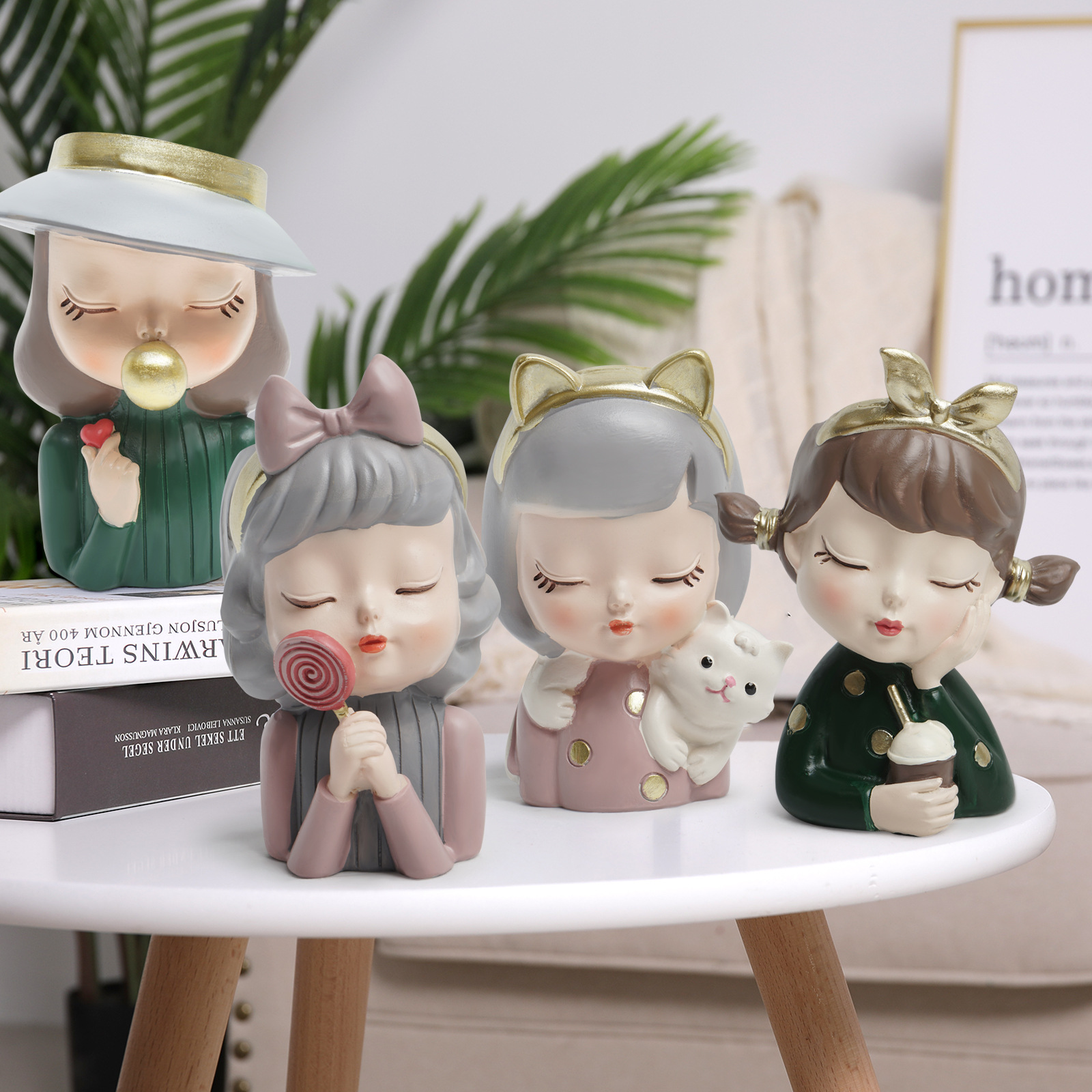 Ins Cartoon Modern Cute Girl Succulent Green Plant Small Flower Pot Desktop Balcony Resin Crafts Decorative Ornaments