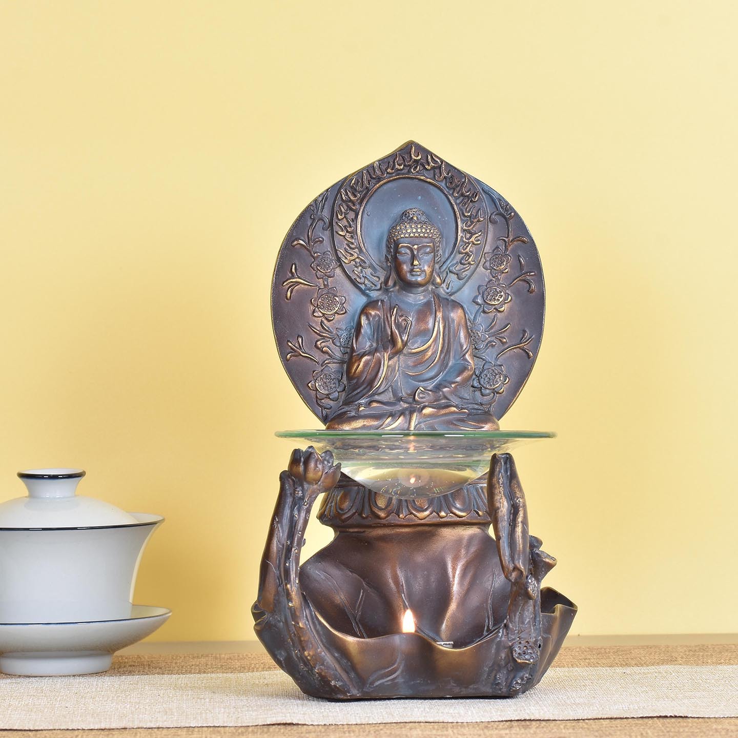 Antique Southeast Asian Zen-Style Sitting Buddha Statue Incense Burner Indoor Tea Ceremony Tabletop Ornament Meditation Yoga Incense Burner Essential Oil Lamp