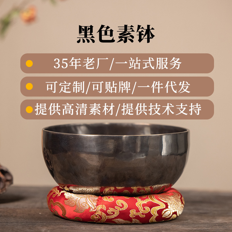 Nepalese Handmade Full Moon Old Yellow Bronze Singing Bowl Buddha Sound Bowl Meditation Healing Bowl Black Copper Chime Ornaments