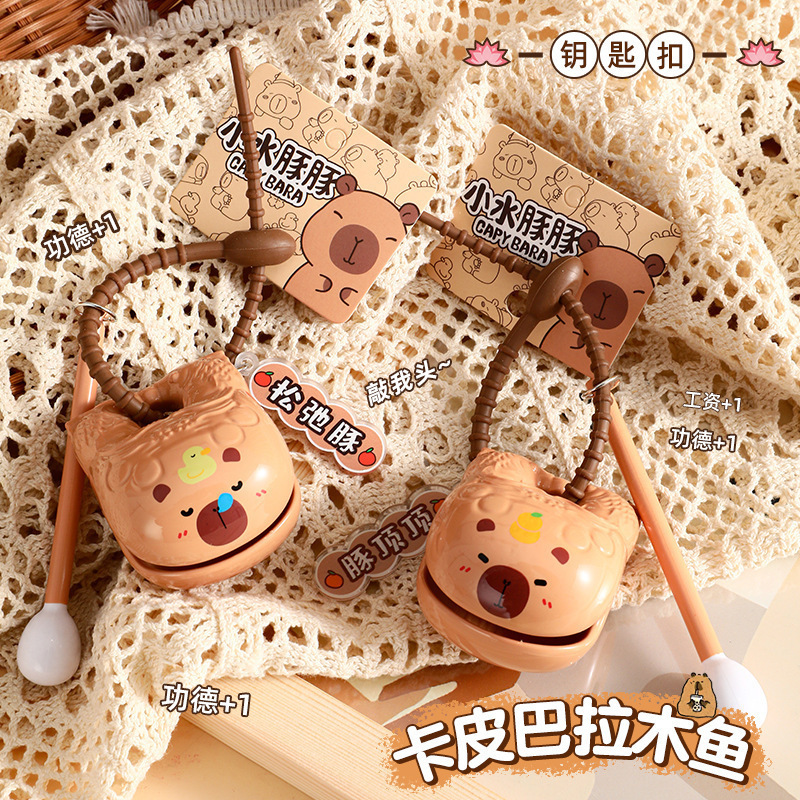 Capibala Wooden Fish Knocking Decompression Meditation Artifact Buddha's Desktop Ornaments Decorative Capybara Toy Cute Pendant