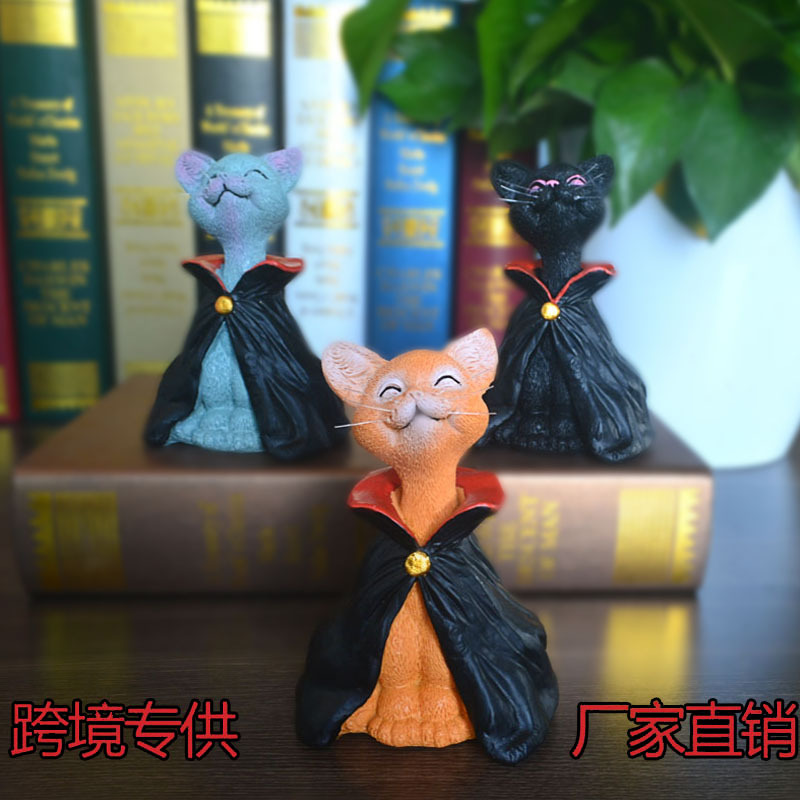 Independent Station Hot Products Resin Ornaments Black Robe Meditation Cat Decoration Statue Desktop Decoration Halloween Decoration