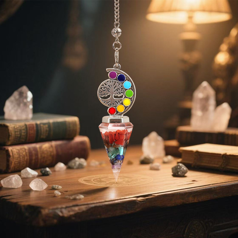 Cross-Border Hot-Selling Colorful Resin Pendulum Natural Crystal Hexagonal Cone Pendant Yoga Meditation European and American Jewelry Accessories