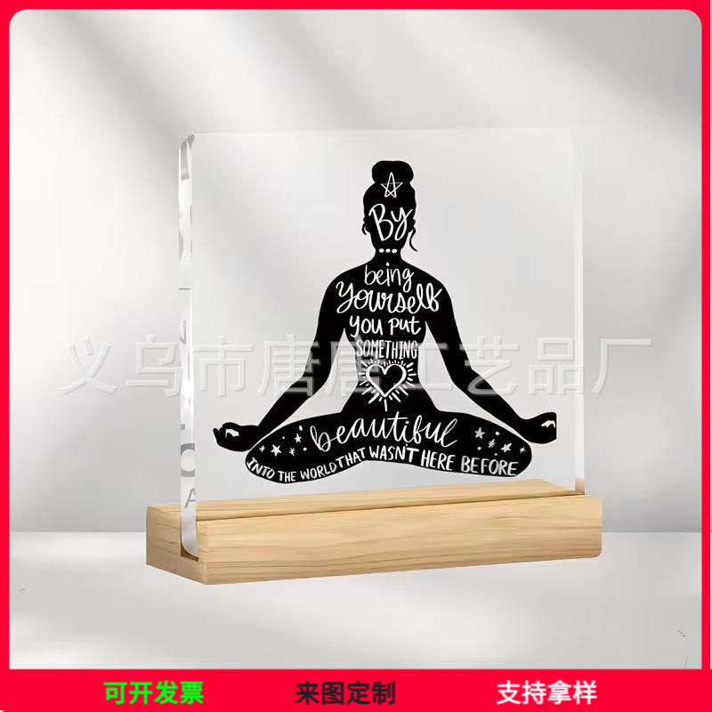 Cross-Border Inspirational Yoga Figures, Acrylic Ornaments, English Positive Energy Quotes, Meditation Modeling Crafts Wholesale