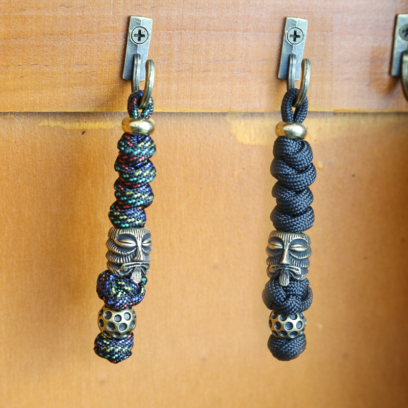 Meditation Keychain Pendant Brass Retro Lanyard Pendant Edc Push Card Knife Pendant Paracord