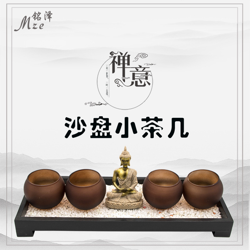 Mingze Wooden Crafts Zen Sand Table Southeast Asia Buddha Decorations Meditation Sand Table Creative Small Coffee Table Jewelry