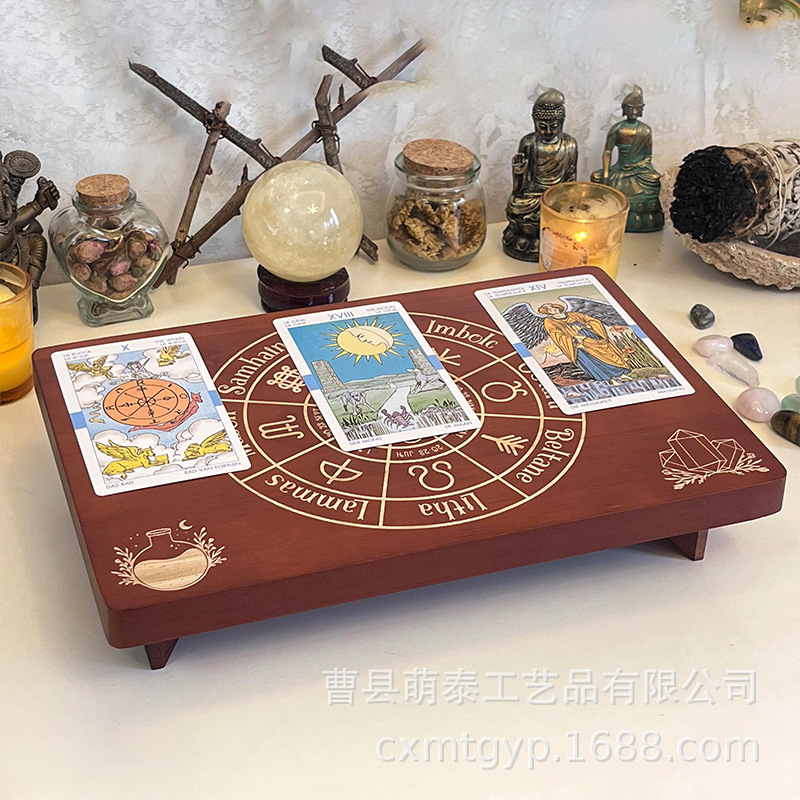 Wooden Tarot Card Storage Table Card Holder Altar Table Halloween Witch Desktop Meditation Table Crystal Display Stand