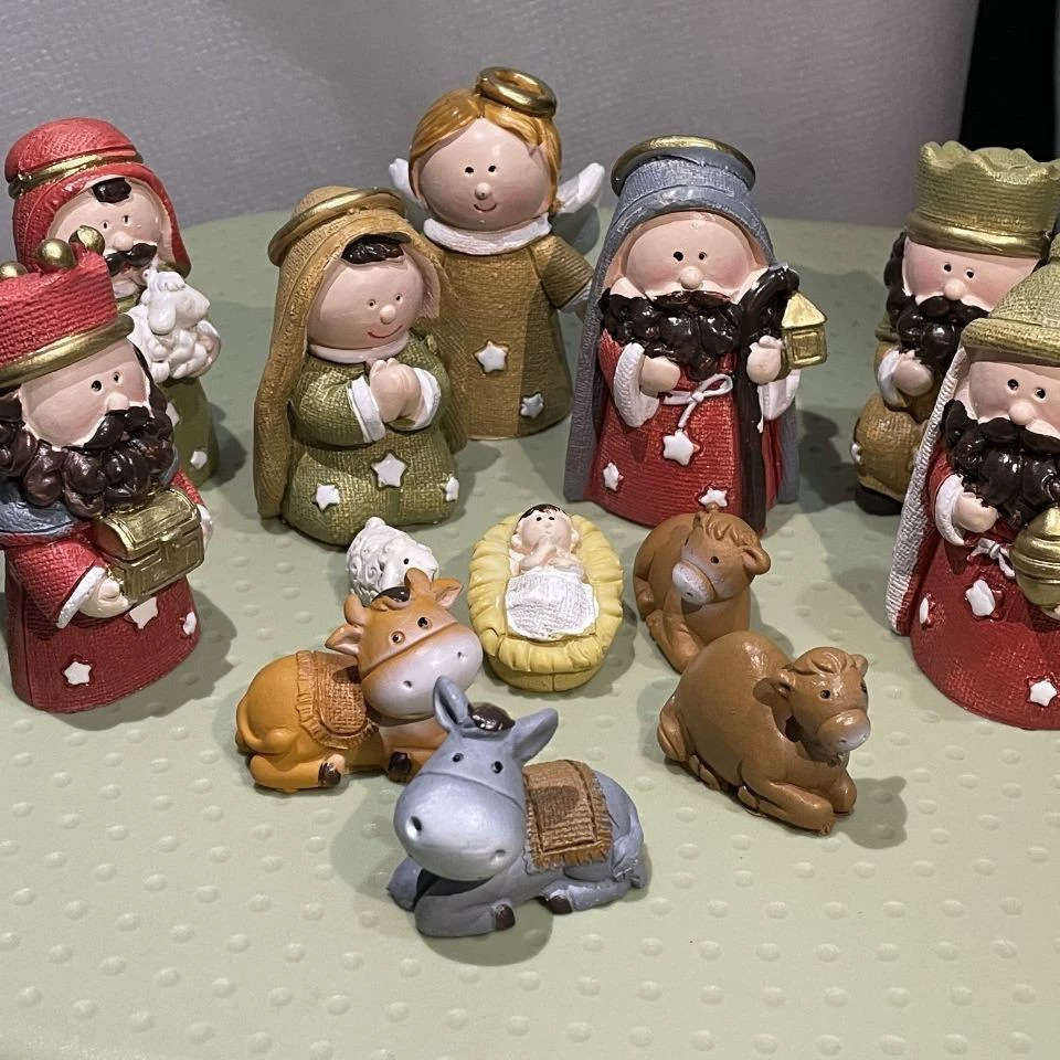 Customized Cross-Border New Product Wind Vane Resin Religious Q Version Manger Baby Ornaments Meditation Sculpture Home Decorations