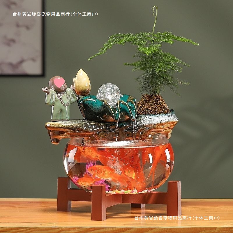Automatic Circulation Glass Fish Tank Small Home Living Room Tv Cabinet Decoration Office Ornaments Opening Gift