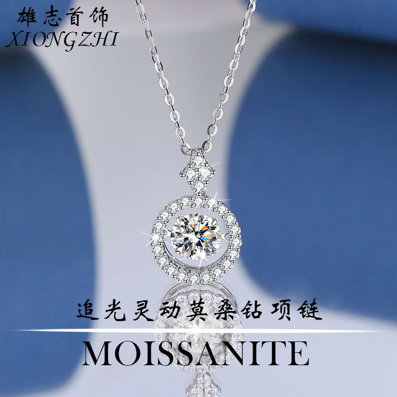 s925 Silver Moissanite Necklace Smart Beating Heart Necklace Female Elegant Fashion Simple Platinum Pendant Clavicle Chain