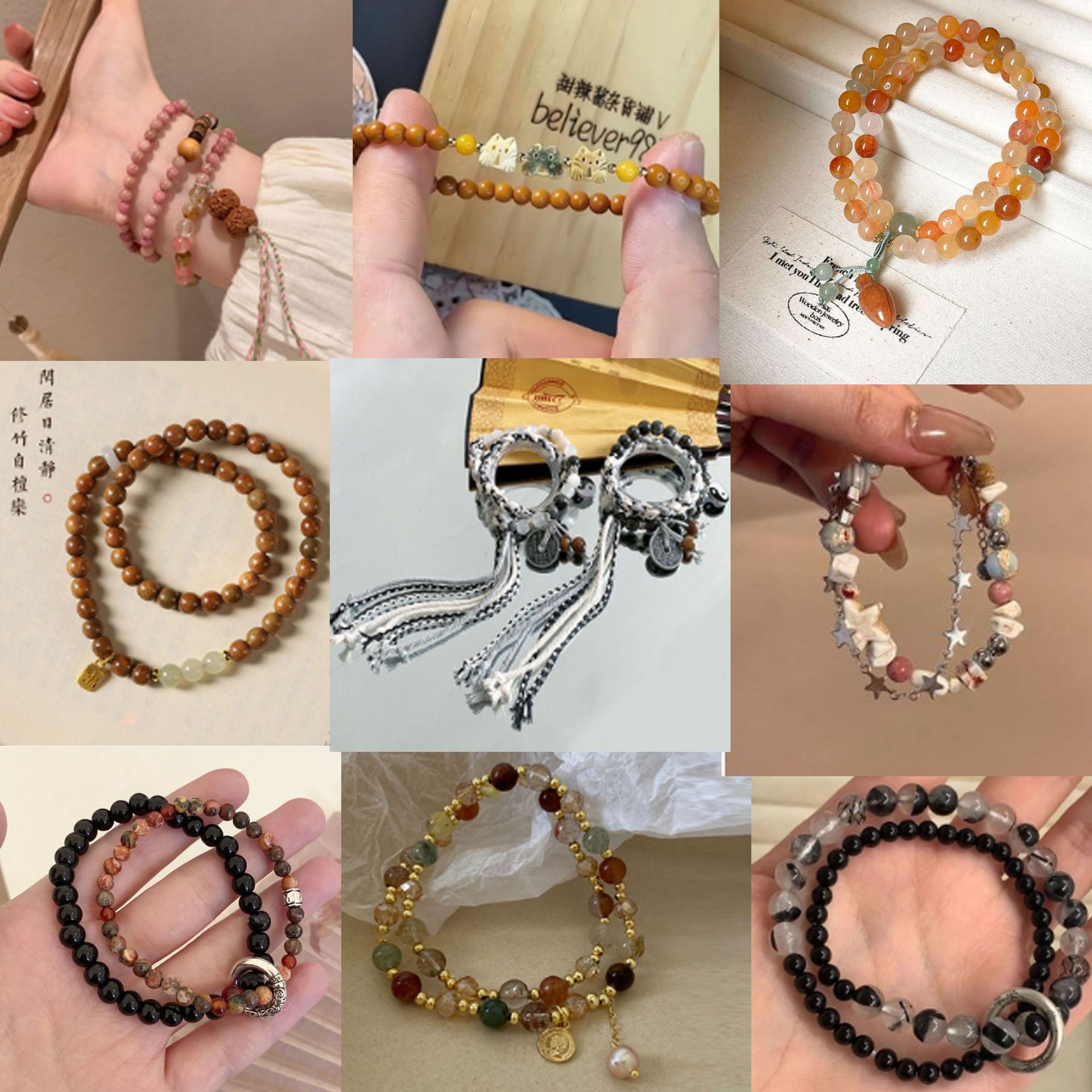 New Chinoiserie Bracelet, Sandalwood, Green Sandalwood Beads, Mountain Ghost, Infinite Money, National Style Bracelet, Stacked Star Running Ring for Couples