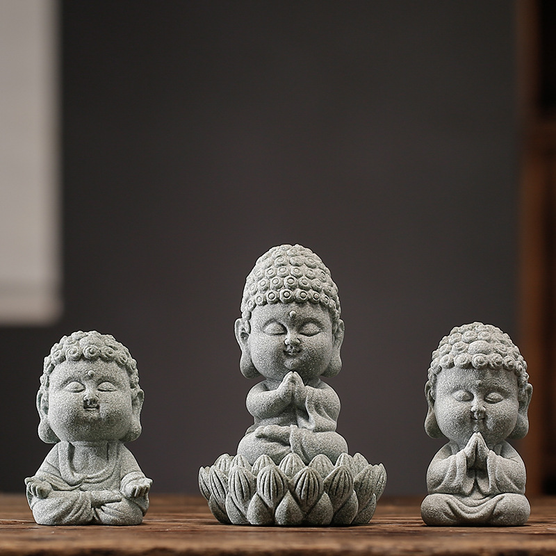 Zen Small Buddha Statue Green Sand Stone Ornaments Creative Chinese Character Sakyamuni Fish Tank Landscape Desktop Decoration