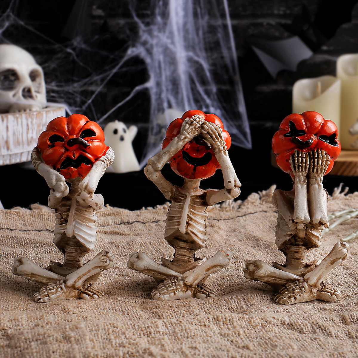 Cross-Border Meditation Yoga Pumpkin Head Skull Doll Ornaments Home Halloween Horror Doll Arrangement Scene Props
