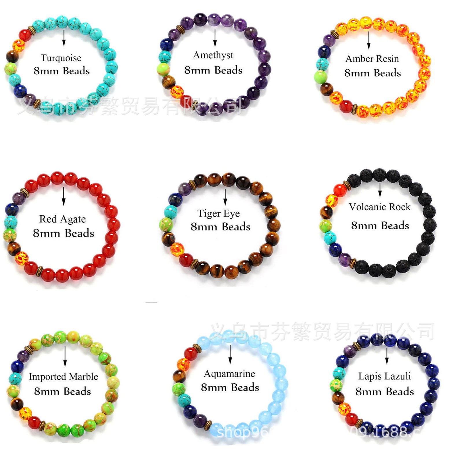 8mm Natural Stone 7 Chakra Healing Natural Stone Yoga Meditation Beaded Natural Stone Bracelet Stretch Bracelet