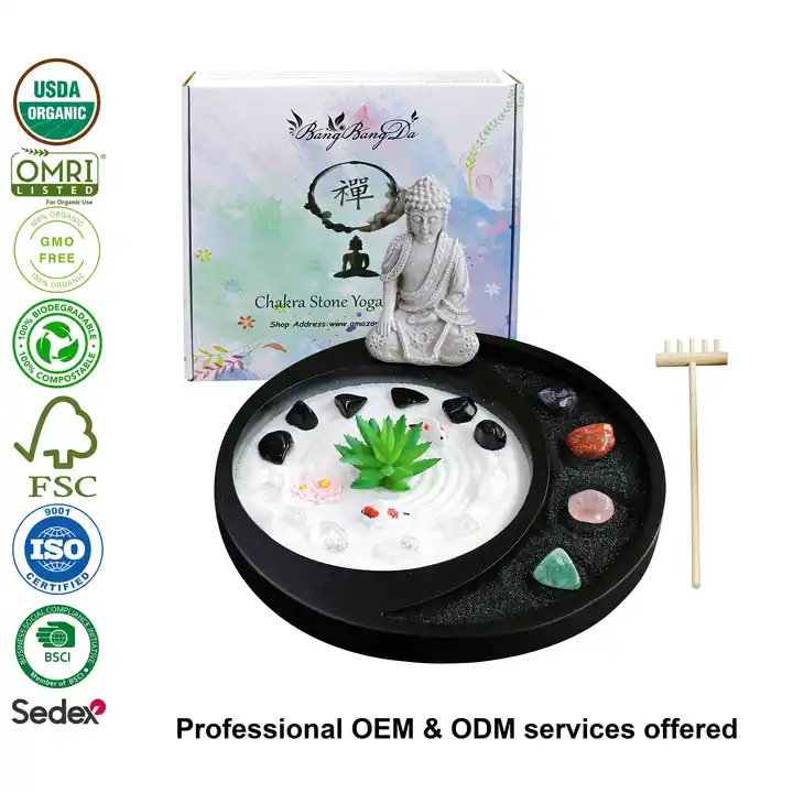 Meditation Buddha Mini Zen Garden Japanese Bonsai Plant Growing Kit with Wood Plant Markers Ornaments Gift Kit
