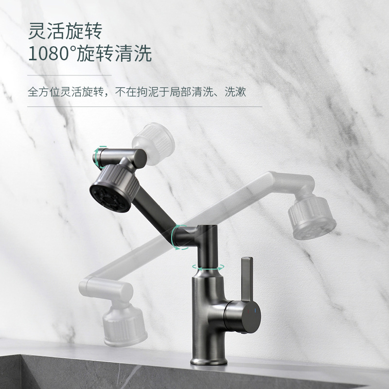 Gun Gray Lucky Cat Copper Digital Display Rotating Basin Faucet Household under Counter Hot and Cold Bathroom Bathroom Cabinet Faucet
