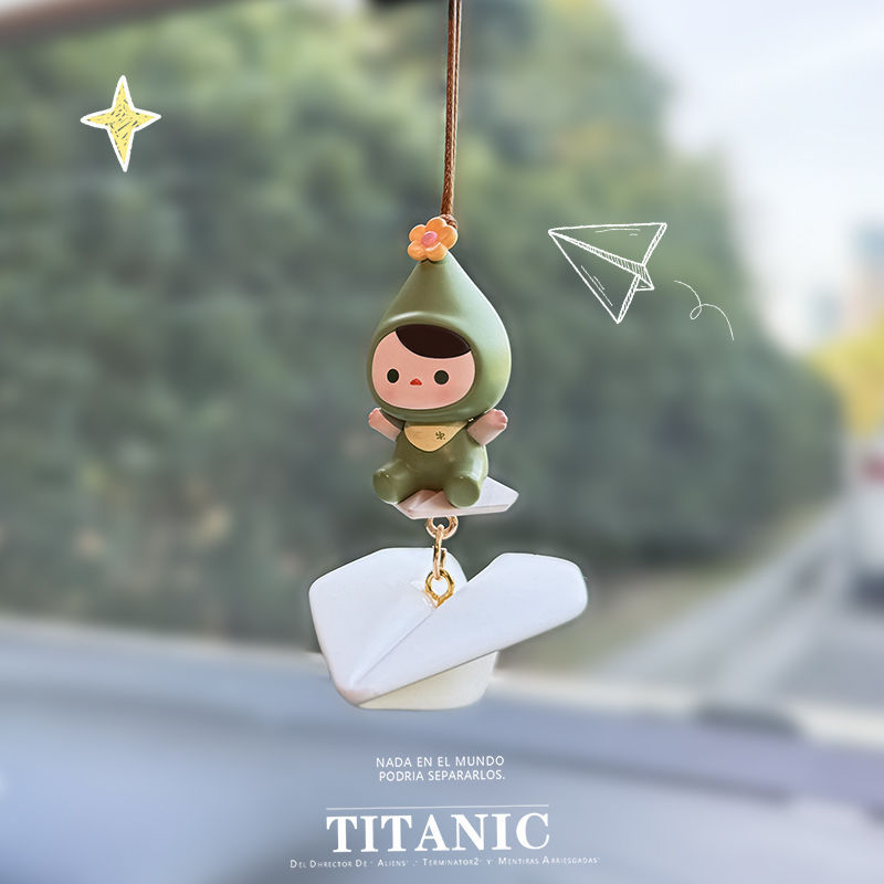 Bubble Mart Thinker Limited Creative Car Pendant Rearview Mirror Paper Airplane Pendant Car Interior Decoration Alloy