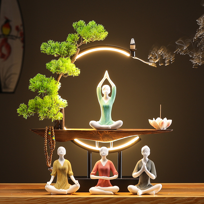 New Chinese Zen Ornaments Lamp Ring Flu Incense Creative Office Living Room Desktop Retro Home Decoration Gifts
