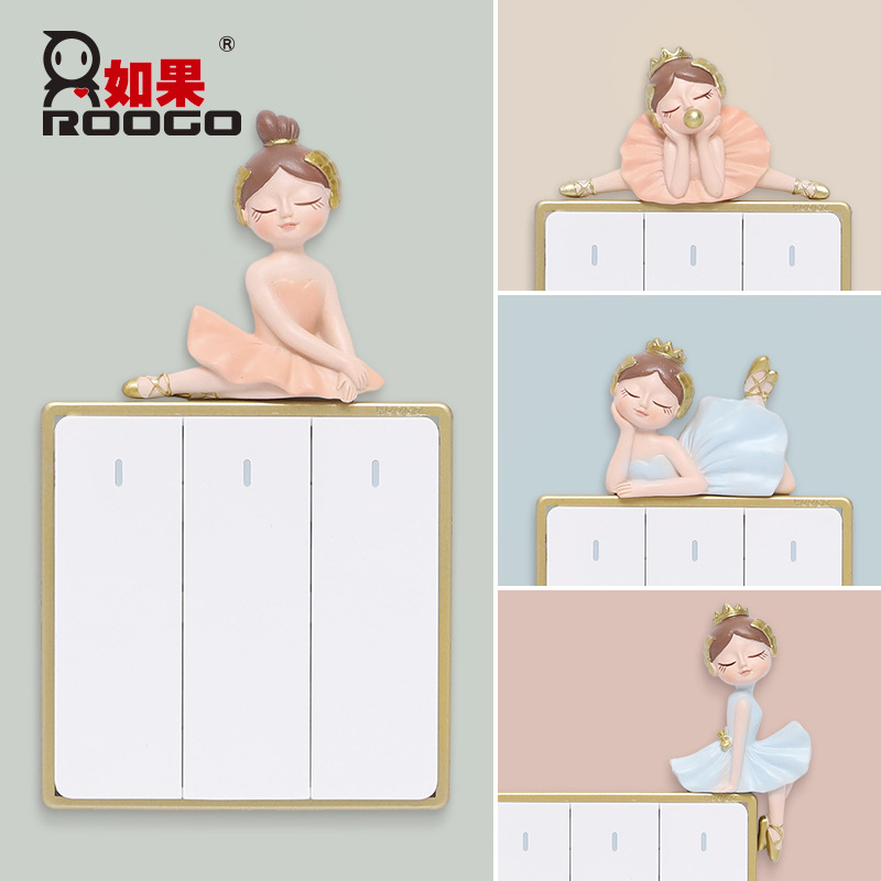 Factory direct creative home decoration wall switch stickers resin crafts three-dimensional 3D ballet wall stickers switch wall decoration
