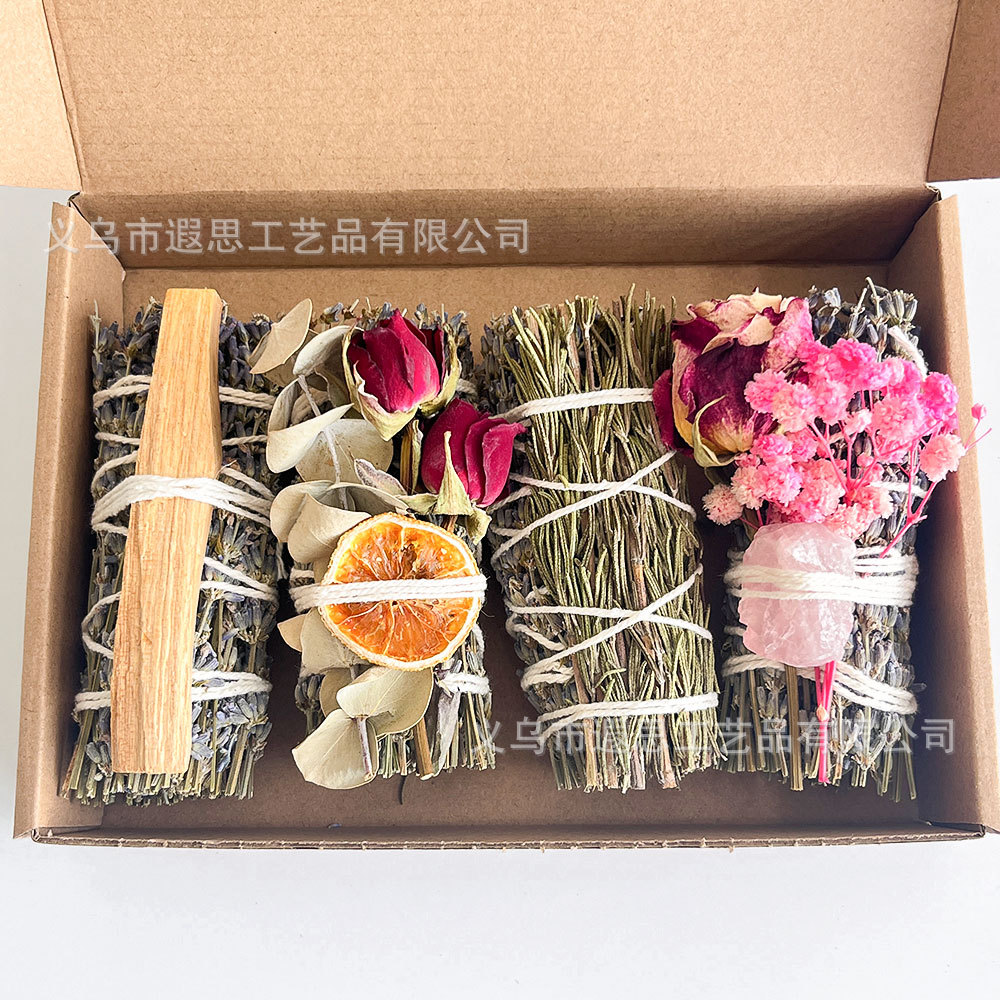 Lavender Rose Bouquet Bundle Natural Crystal White Sage Sacred Wood Purifying Space Meditation Creative Set