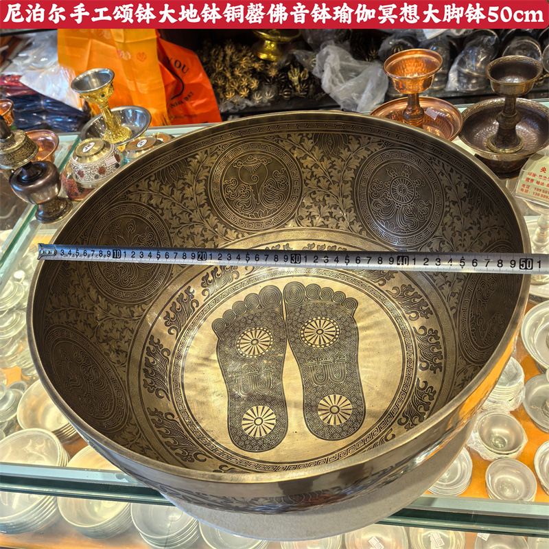 Nepal Handmade Psalm Bowl Earth Bowl Copper-exhausted Buddha Sound Bowl Buddhist Tools Ornaments Yoga Meditation Copper Big Foot Bowl 51cm