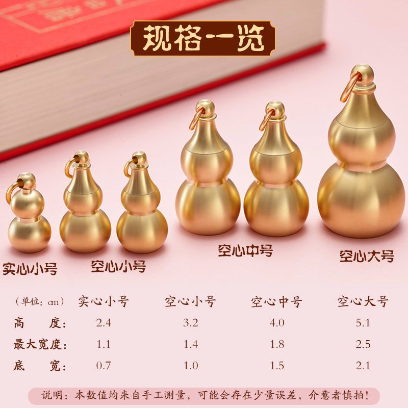 Pure Brass Keychain, Pure Copper Handmade Small Gourd, Solid or Hollow, Car Key Chain, Backpack Pendant, Accessory