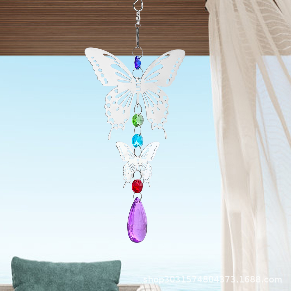 Cross-border 3d butterfly rotating wind chimes pendant crystal prism sun catcher meditation outdoor garden hanging decorations