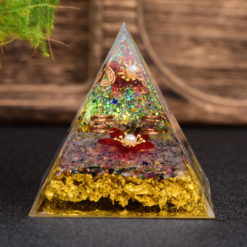 New Energy Tourmaline Pyramid Crystal Gravel Pure Copper Scrap Resin Home Crafts Ornaments Reiki Meditation Stone