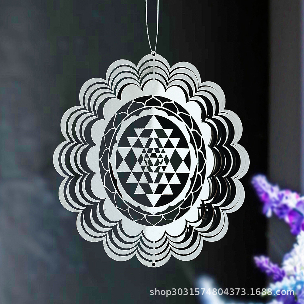 Cross-border creative new Whirligig3D rotating wind chimes sacred geometric pattern yoga meditation courtyard decoration